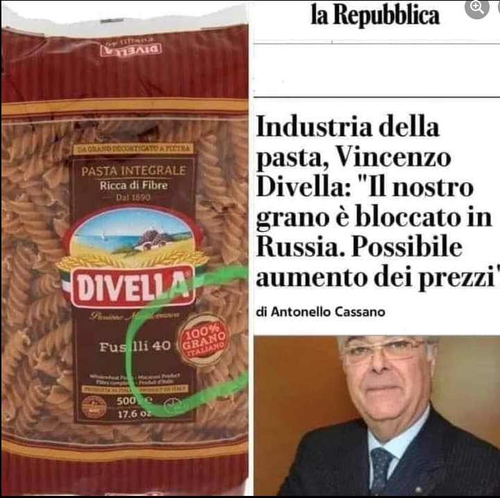 Vincenzo Divella, patron dell’omonimo gruppo produttore di pasta ha rilasciato qualche giorno fa un’intervista dove si diceva preoccupato per un carico di grano che rischiava di rimanere bloccato nel porto di Azov al confine fra Russia e Ucraina. Divella precisava che si trattava di 30mila quintali di “grano tenero pregiatissimo, molto proteico, che serve per fare prodotti di pasticceria, acquistato dalla Russia”. “Ho del grano tenero pregiatissimo, molto proteico – ha dichiarato – che serve per fare prodotti di pasticceria, acquistato dalla Russia. Parliamo di 30mila quintali costati circa 1,1 milioni di euro. Senza quello né io né altri, non sono il solo che compra in Russia, possiamo fare i dolci. La questione è che a questo punto non so se mi caricano quel prodotto”.