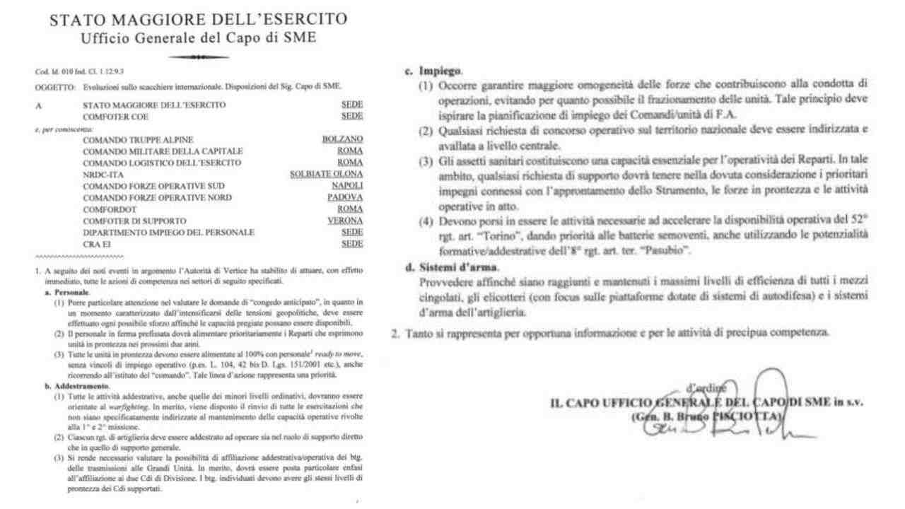 Una circolare a firma del Generale di Brigata svela le intenzioni dello Stato Maggiore dell’Esercito italiano